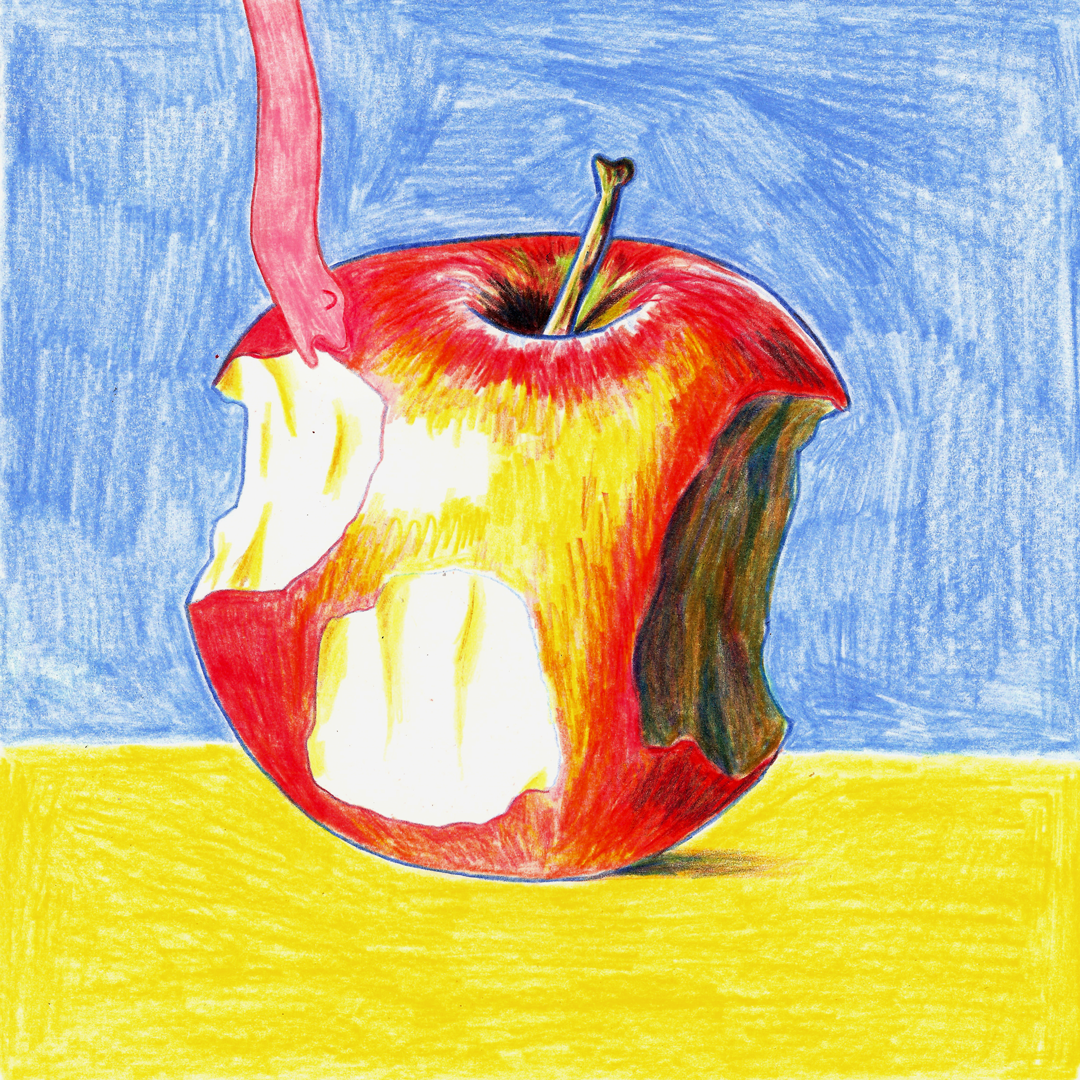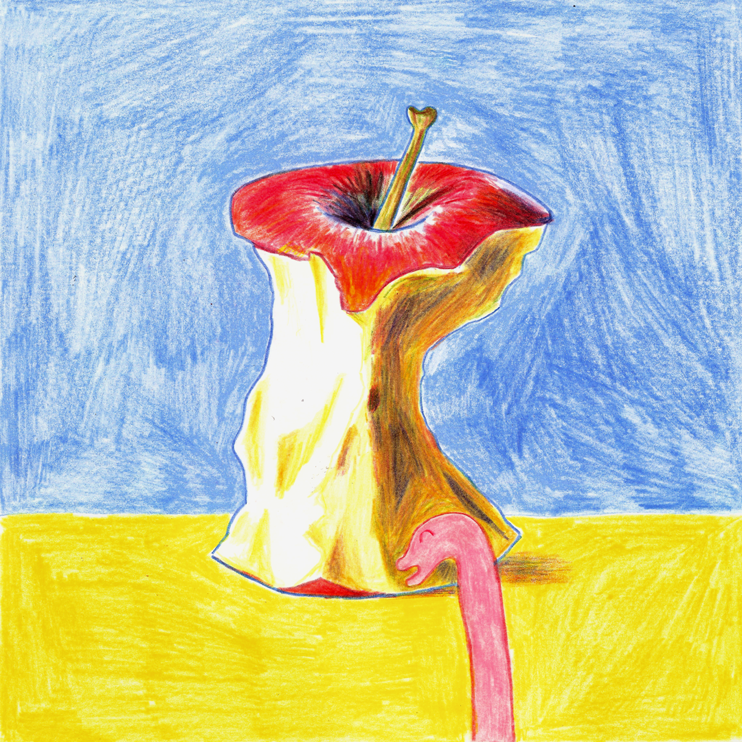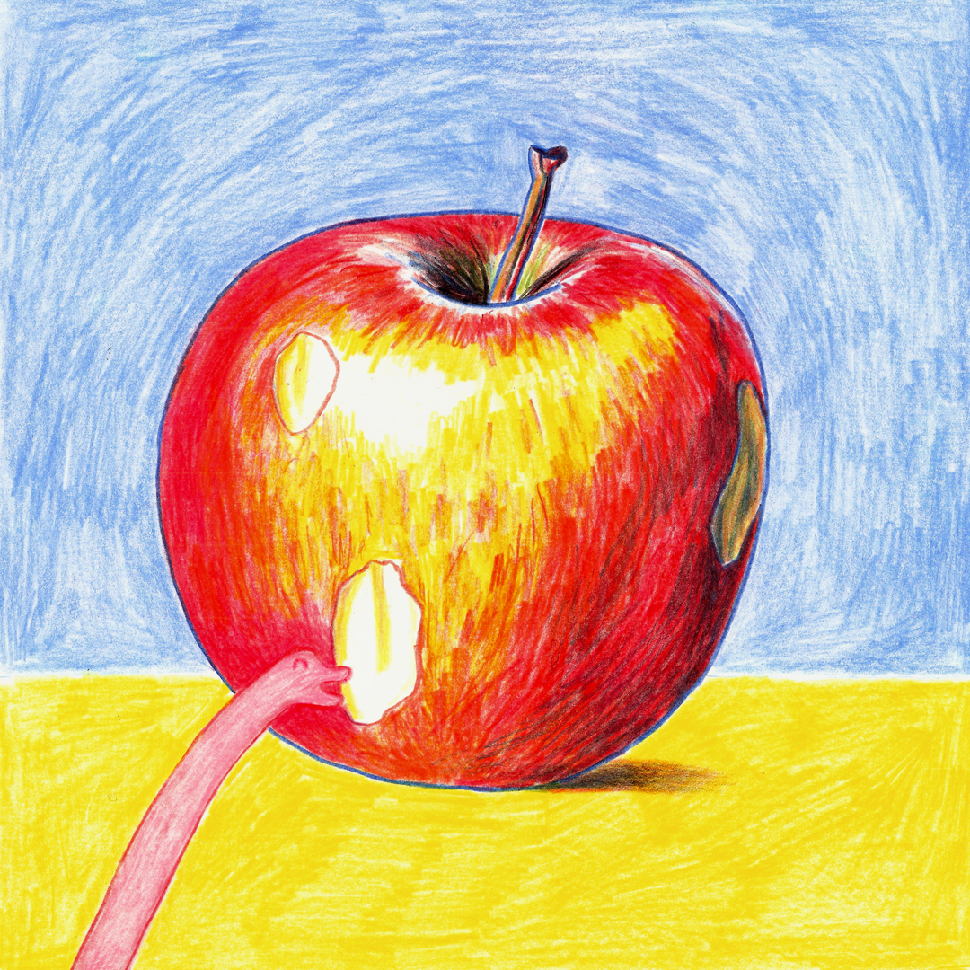 Short comic about a worm and an apple. Pencil on paper. 2019